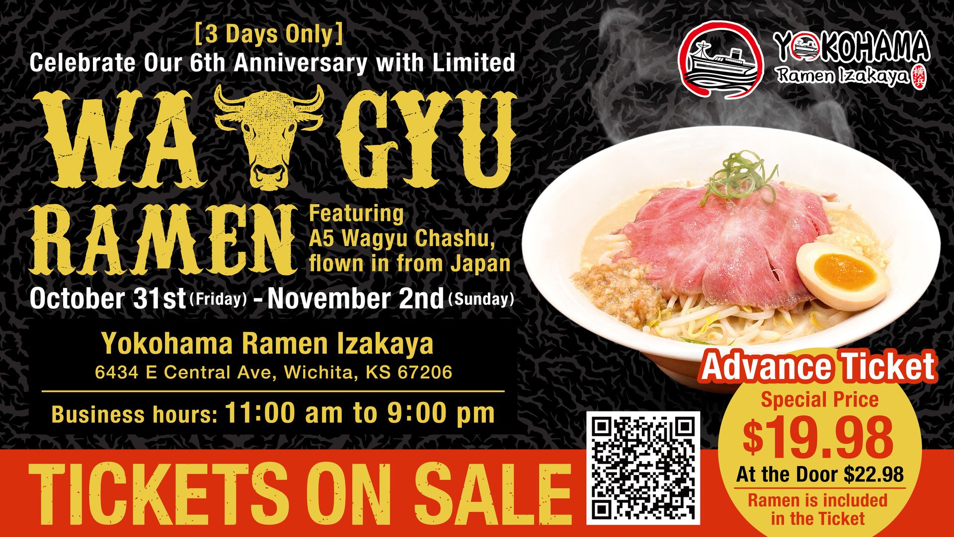 Yokohama Ramen Izakaya is celebrating six years with a special weekend dinner featuring ramen with A5 Wagyu Chashu flown in from Japan.