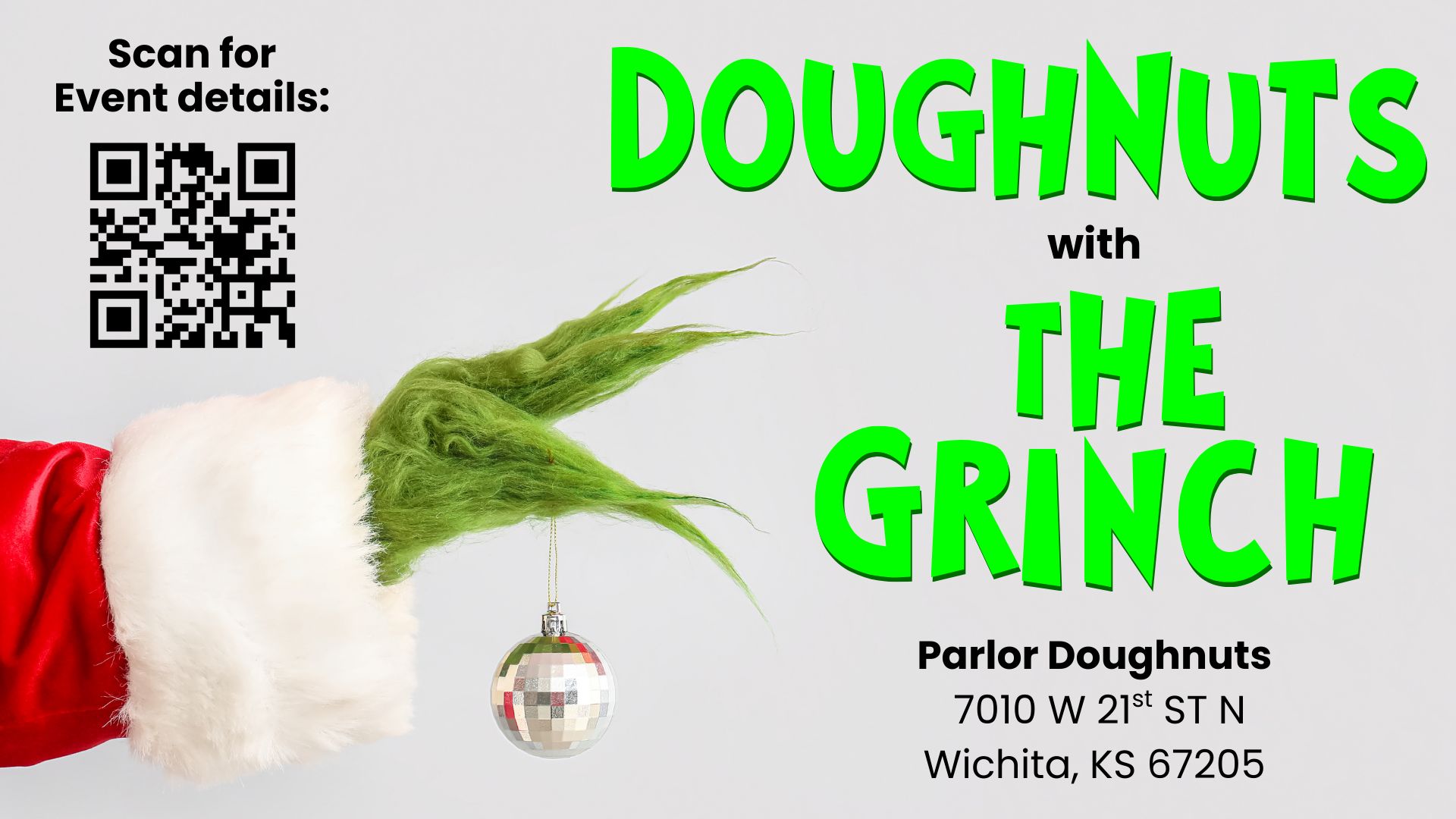 Join us for a magically mischievous holiday morning at Parlor Doughnuts Wichita! Bring the whole family (and your festive PJs!) for “Doughnuts with The Grinch”, a fun + cozy meet-and-greet event where you can enjoy our Famous Layered Doughnuts™ and snap photos with the green guy himself.