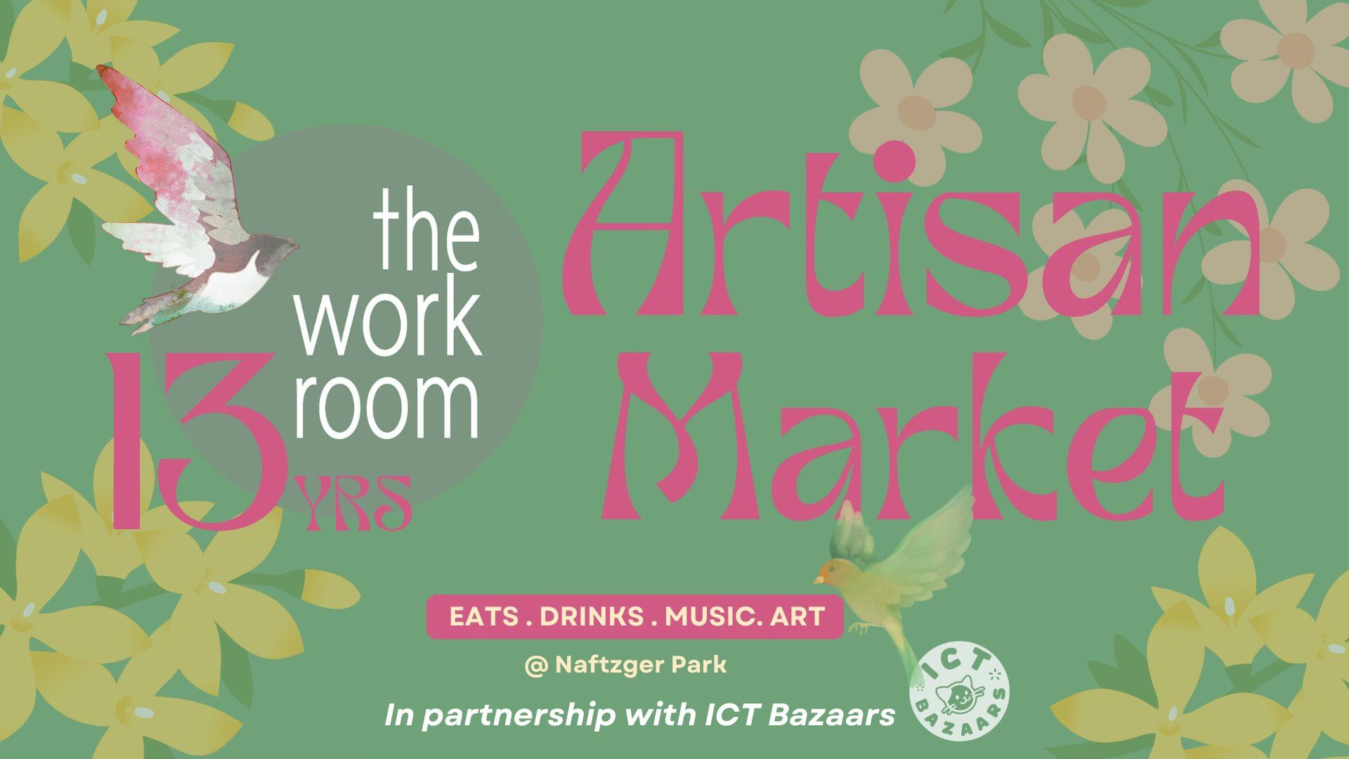 The Workroom's 2nd Saturday Artisan Market is back and we are doing it bigger and better than ever for our 13 YEAR anniversary! We will be taking over Naftzger Park and St Francis alongside our building to host an array of local artists, makers and entrepreneurs PLUS special performers, youth arts, food trucks, a champagne garden and more!